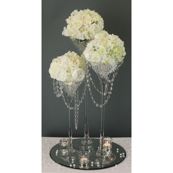 | 3 | Place your mirror plate on the table and position your three vases. Fill the vases with your water pearls. |