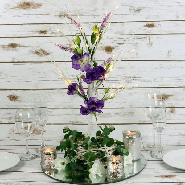 SummaryUse trailing florals and foliage to create this woodland themed illuminated centrepiece.