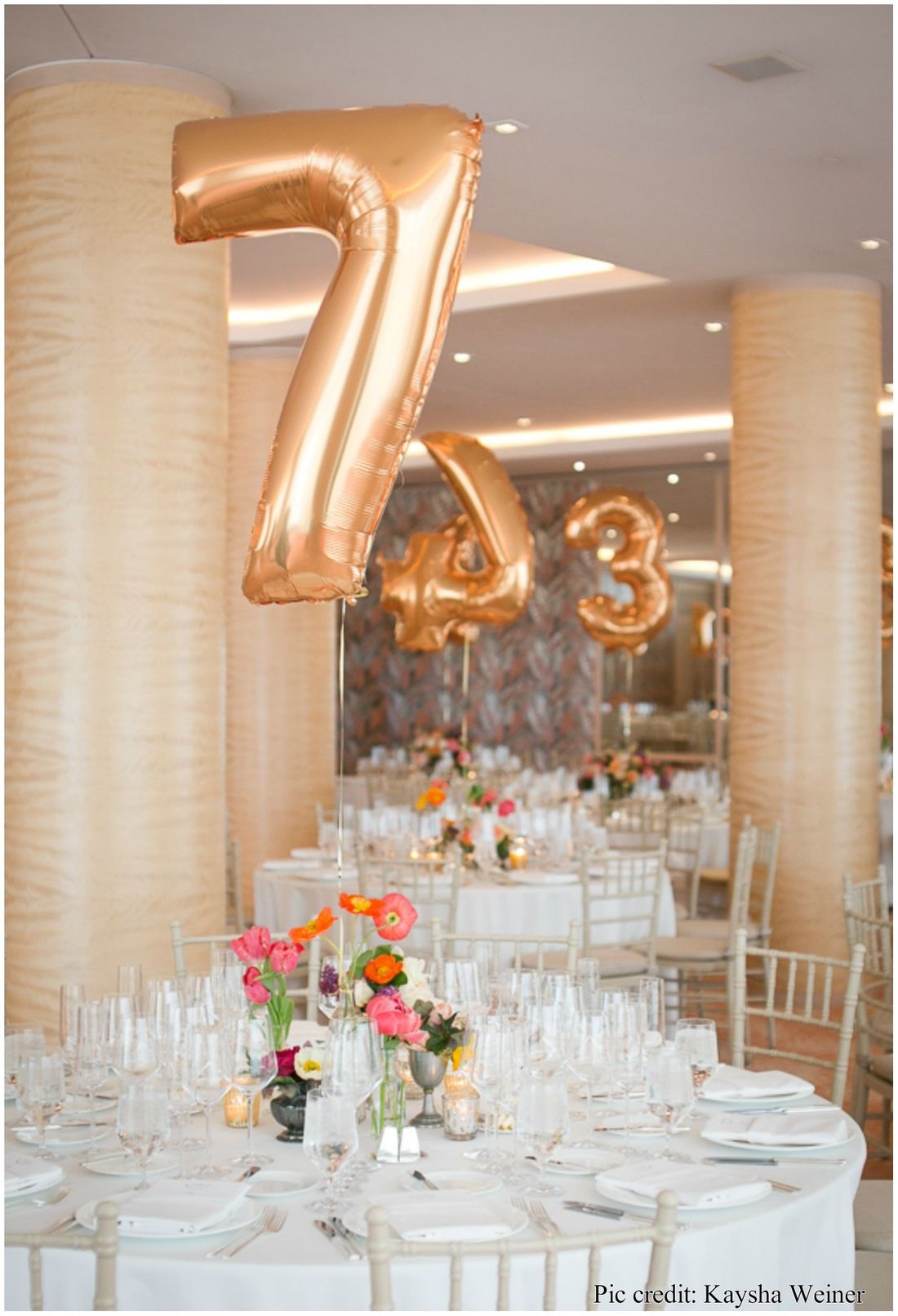 They make cool photo props and can be used as table numbers as pictured here; create a visual impact by simply tying them to your centrepieces. We also love the idea of releasing lots of colorful balloons to celebrate your event. Letter balloons also make fun backdrops, so think about using your initials or create the word 'LOVE' and use it as signage on your big day.