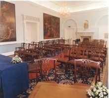 Description: Built in 1775 by Thomas Baldwin, the magnificent Guildhall is ornately furnished and fitted. The splendid Banqueting Room, approached by a grand oak staircase, is gloriously decorated with royal paintings and hung with crystal chandeliers, and makes an excellent wedding reception venue for up to 180 people. You also have the choice of two civil wedding venues, the Aix-en-Provence Room and the Braunschweig Room: both of which also lend themselves to pre-dinner drinks receptions.