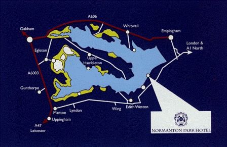 Directions by car: The Hotel is easy to find as it is situated on the South Shore of Europe's largest man made reservoir, Rutland Water. Take the Edith Weston turn off from the A606 from Stamford to Oakham just before you reach the picturesque village of Empingham.