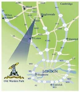 Directions by car: Old Warden is two miles due West of the A1 where it bypasses Biggleswade, approximately 30 miles from junction 23 of the M25 and 16 miles from junction 9 M1
