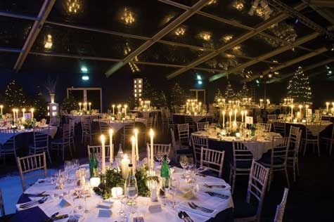 Description: There can be few more exclusive settings for a summer party or event than the beautiful secluded gardens of The Royal Hospital, Chelsea, home to the prestigious Chelsea Flower Show. This beautifully finished marquee includes a spacious reception area, overlooking a stunningly lit private garden area with an outside bar. The main dining marquee is fully floored and carpeted with hand-made flat linings, fantastic atmospheric and pin-spot lighting and a cool air system, offering complete flexibility for both daytime and evening events.