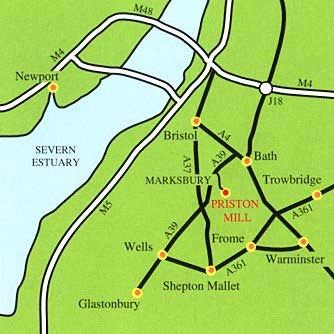 Directions by car: From Bath follow the A4 towards Bristol. From Bristol follow the A4 towards Bath. Take the A39 for Wells at the roundabout. Turn left at Marksbury and follow Heritage signs for Priston Mill. Distance from Bristol is approximately 8 miles and from Bath is 6 miles.